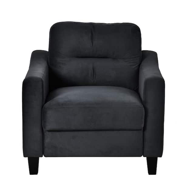 Black Velvet Upholstered Armchair with Rubber Wood Tapered Legs