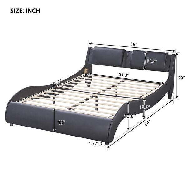 Black Wood Frame Full Size Upholstered Faux Leather Platform Bed with LED Light