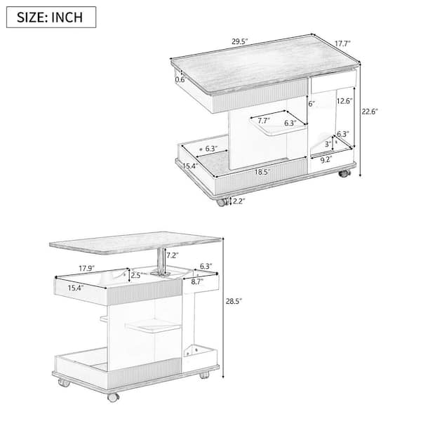 Black and Brown 17.7 in. Rectangle Wood Modern End Table with Wheels, 360°Rotating Top Sofa Side Table