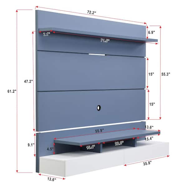 Blue Modern Wall Mounted Floating Entertainment Center Fits TV up to 80 in. TV Stand with 2-Drop Down Doors