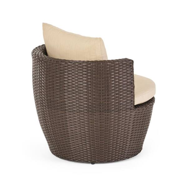 Brown 3-Piece Rattan and Aluminum Frame Outdoor Patio Chat Set with Coffee Table and Beige Cushions