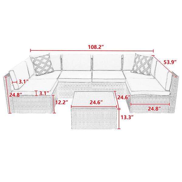 Brown 7-Piece Wicker Outdoor Sectional Set with Navy Blue Cushions and 2 Throw Pillows