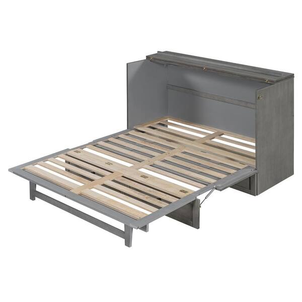 Brushed Gray Queen Size Murphy Bed with Large Drawers, 2 USB Ports, 2 Three-prong Outlets