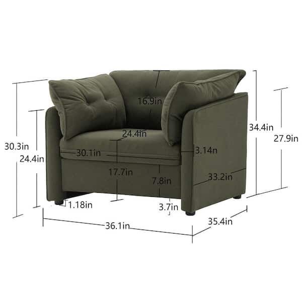 Button-Tufted Green Chenille Arm Chair, Accent Chair