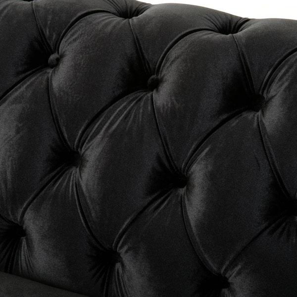Chesterfield 59.44 in. Black Velvet Upholstered 2-Seater Rolled Arm Loveseat Sofa with Tufted Button