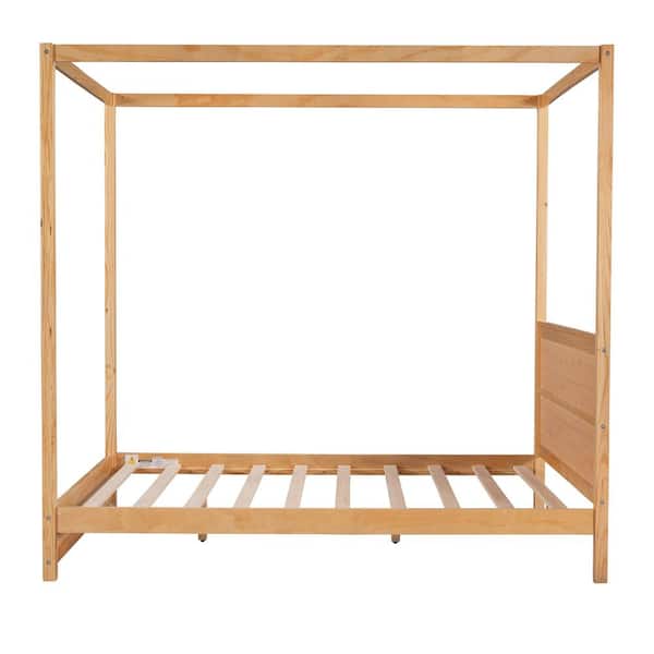 Contemporary Natural (Brown) Wood Frame Full Size Canopy Bed with Headboard, Footboard and Slat Support Legs