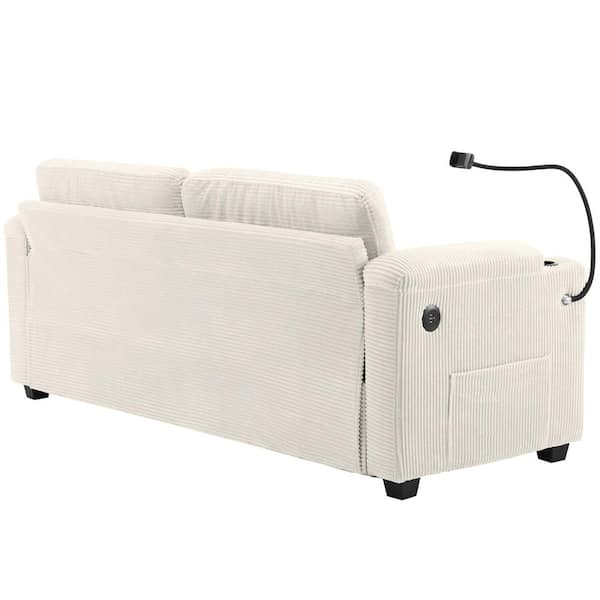 Convertible 72.8 in. Beige Corduroy Fabric Full Size Sofa Bed with Memory Foam Mattress, Side Pockets, Phone Holder