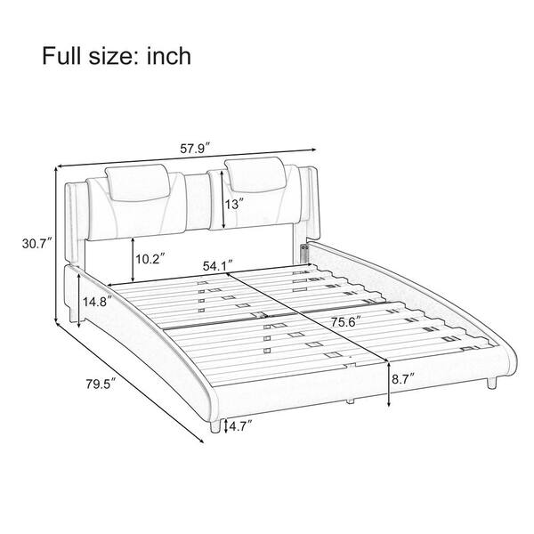Curve Design Black Wood Frame Full Faux Platform Bed Leather Upholstered LED Light, Pillow and Adjustable Headboard