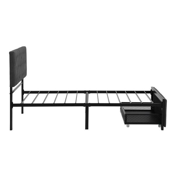 Dark Gray Metal Frame Twin Size Upholstered Platform Bed with Big Drawer and Adjustable Headboard