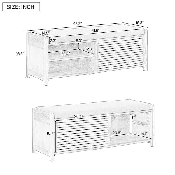 Espresso Acacia Veneer Living Room Storage Bench with Seat Cushion, 2 Shutter Doors and 3 Shelves 43.3 in.