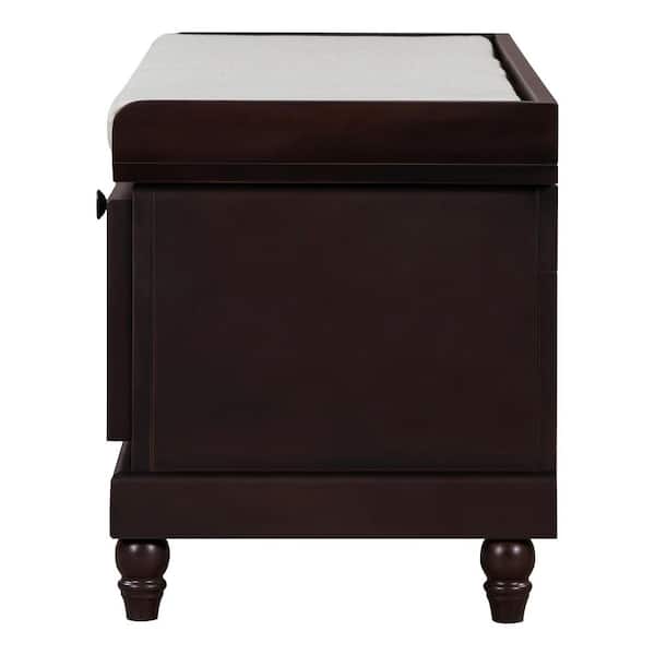 Espresso Dining Bench with Cushioned Seat, Flip Top Storage and 3 Drawers 44 in.