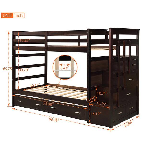 Espresso Twin Over Twin Bunk Bed with Trundle and Drawers