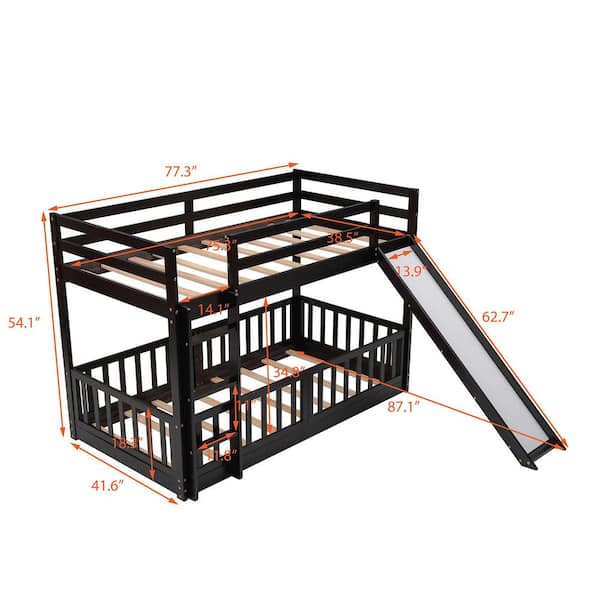 Espresso Twin Over Twin Wood Bunk Bed with Slide and Ladder