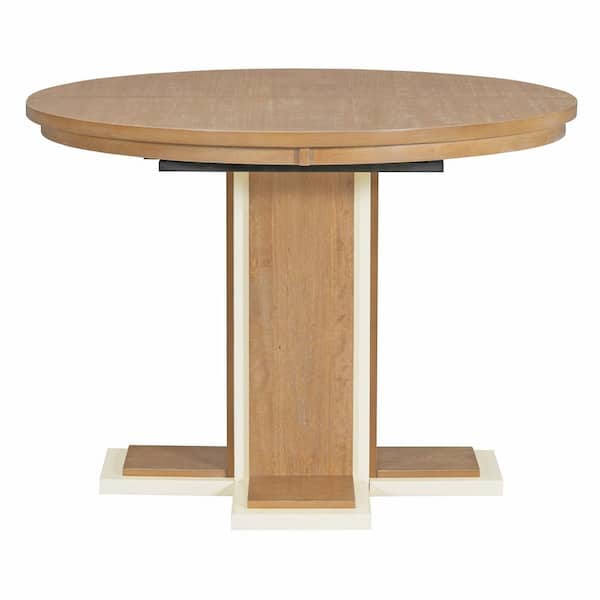 Extendable Natural Wood Wash Wood Top 42 in. Pedestal Dining Table Seat 4 with 16 in. Middle Leaf