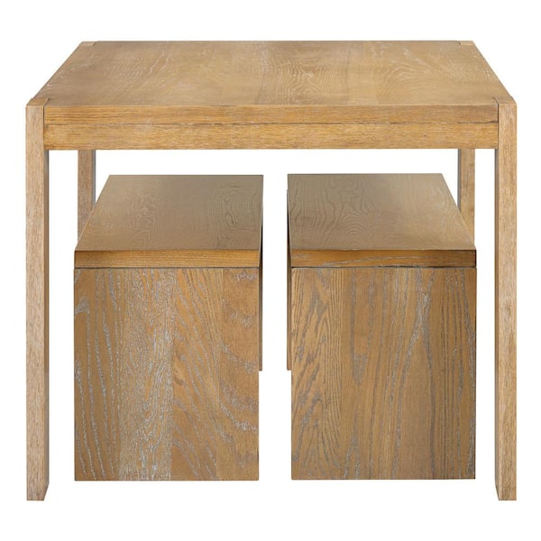 Farmhouse Style Natural Wood Wash 3-Piece Rectangular Wood Top Dining Set Seats 4 with Thickened and Widened Legs
