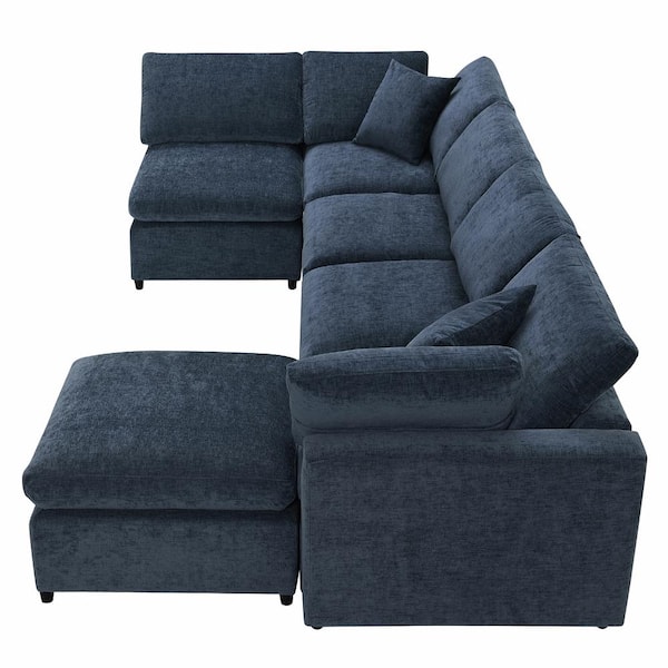 Free Combination 130 in. Chenille Modular Modern Sectional Sofa in Dark Blue with Ottoman, 2 Pillows