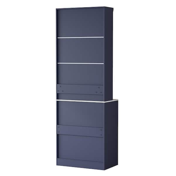 Freestanding Blue Kitchen Pantry Organizer, Cabinet with Faux Marble Top, Adjustable Shelf, 5-Drawers
