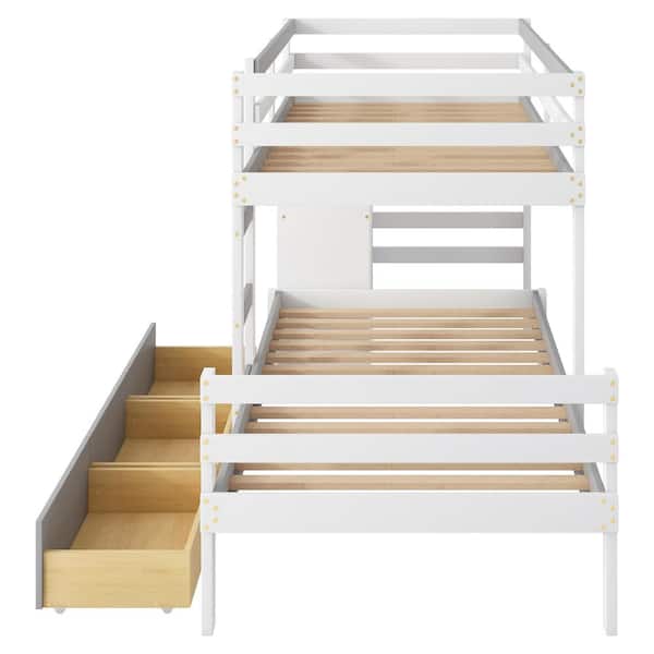 Gray Twin over Twin Wood Bunk Bed with 6- Drawer, Built-in Ladder and Full-Length Guardrails for Upper Bed