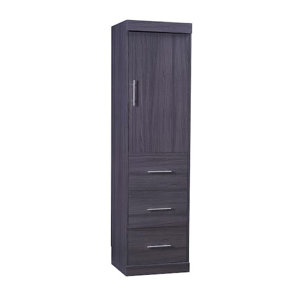 Gray Wood Frame Full Size Murphy Bed with Wardrobe and Three Drawers