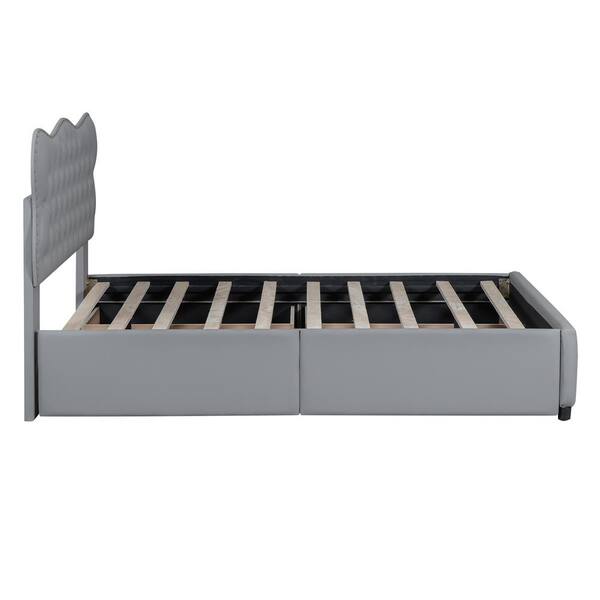 Gray Wood Frame Full Size PU Upholstered Platform Bed with Button-Tufted Headboard, 4-Drawers, Nail Head Trim