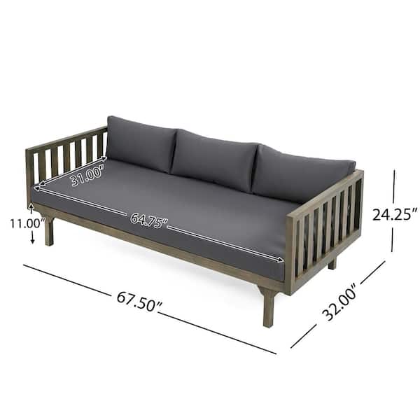 Gray Wood Outdoor Patio Day Bed with Gray Cushions