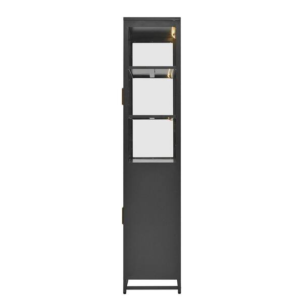 LED Lights Black 76.75 in. H Steel Storage Display Cabinet with 2 Adjustable Shelves, Tempered Glass Doors