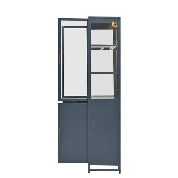 LED Lights Dark Blue 76.75 in. H Steel Storage Display Cabinet with 2 Adjustable Shelves, Tempered Glass Doors