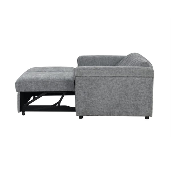 Modern 63 in. Gray Polyester Twin Size Sofa Bed, Convertible Loveseat with Adjustable Backrest