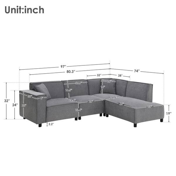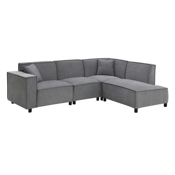 Modern Minimalist Style 97 in. W L-Shaped Chenille Sectional Sofa in. Gray with 2 Pillows