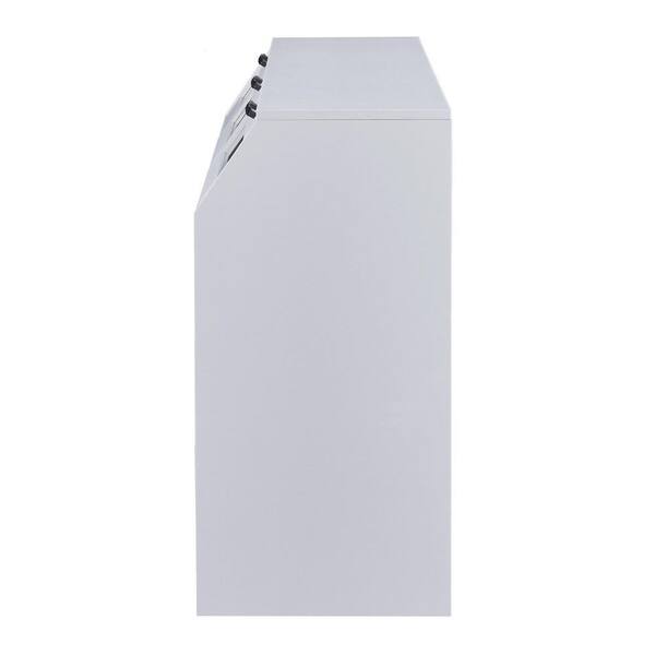 Multifunctional White Buffet Cabinet With 4-Drawers, Mesh Metal Doors, Adjustable Shelves and Wineglass Holders