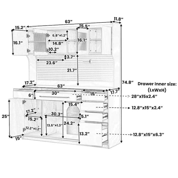 Multifunctional Wood White Kitchen Pantry Organizer with Sliding Glass Doors Buffet, 6 Adjustable Shelves, 6 Drawers