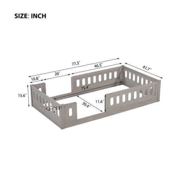 Natural Twin Size Solid Wood Frame Platform Bed with Guardrail