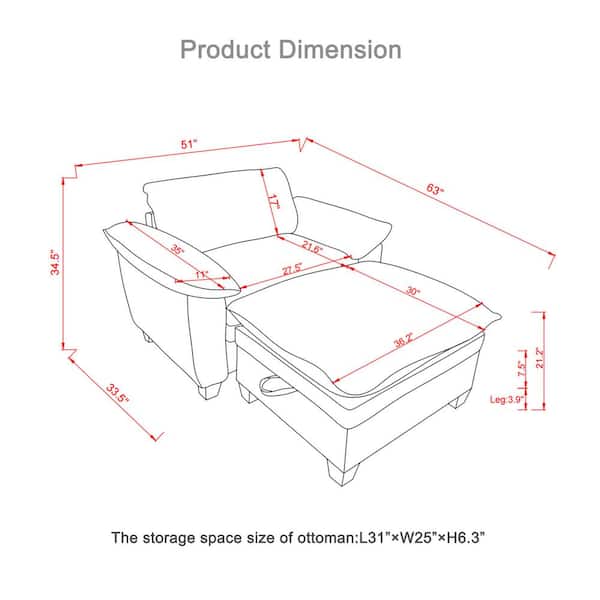 Oversize Beige 51 in Chenille Upholstered Single Arm Chair, Chaise Lounge Chair with Storage Ottoman, 2-Layer Cushions