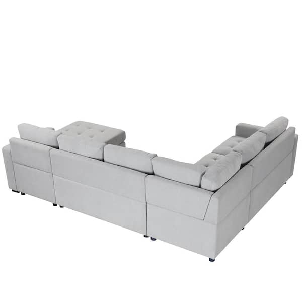 Oversized 108.3 in. Polyester Sectional Sofa in. Gray with Pull-out Sofa Bed, USB and Type-C Interfaces