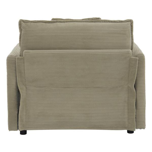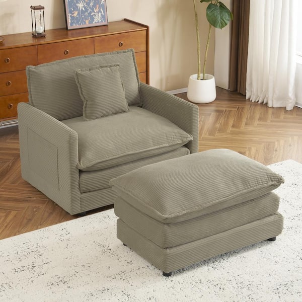 Oversized Brown Corduroy Polyester Straight Arm Chaise Lounge with Pillow, Side Pockets, 2-Layer Cushions, Ottoman