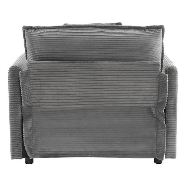 Oversized Dark Gray Corduroy Polyester Straight Arm Chaise Lounge with Pillow, Side Pockets, 2-Layer Cushions, Ottoman