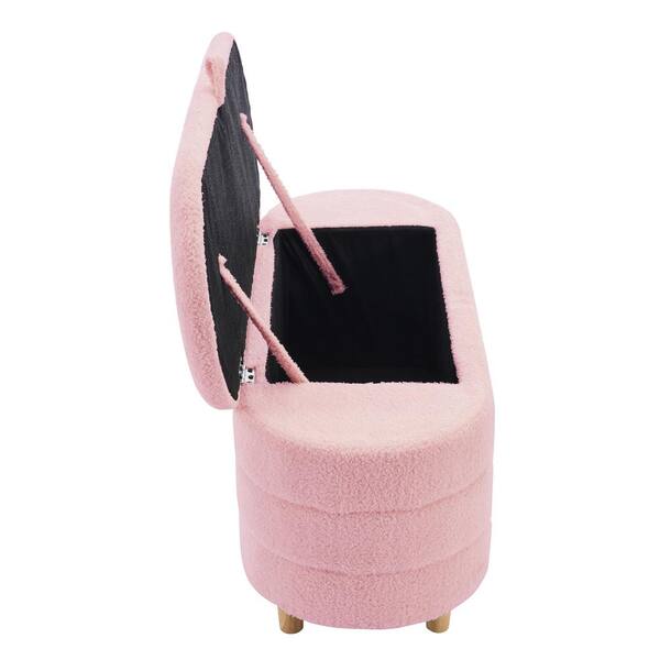 Pink 42.1 in. Sherpa Fabric Upholstered Bedroom Bench Entryway Bench with Wood Legs
