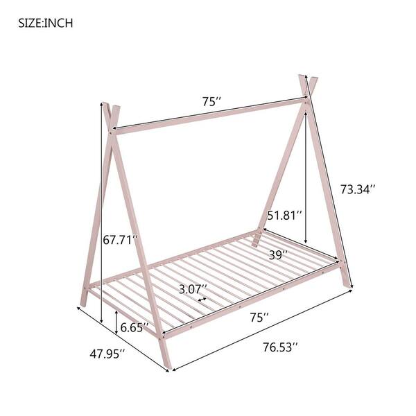 Pink Twin Size Metal Floor Play House Bed Tent Bed Frame with Slats