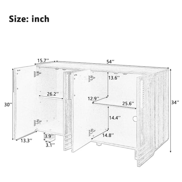 Relief Design Black Wood 54 in. Sideboard with Gold Wave Handles and Adjustable Shelves