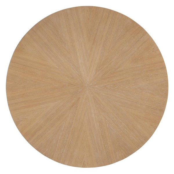 Retro 5-Piece Round Natural Wood Wash MDF Top Table Dining Set with Radial Wood Grain Design, 4-Gray Linen Chairs