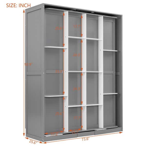 Rotating Design Gray Wood Frame Queen Size Murphy Bed with Hidden Storage Racks