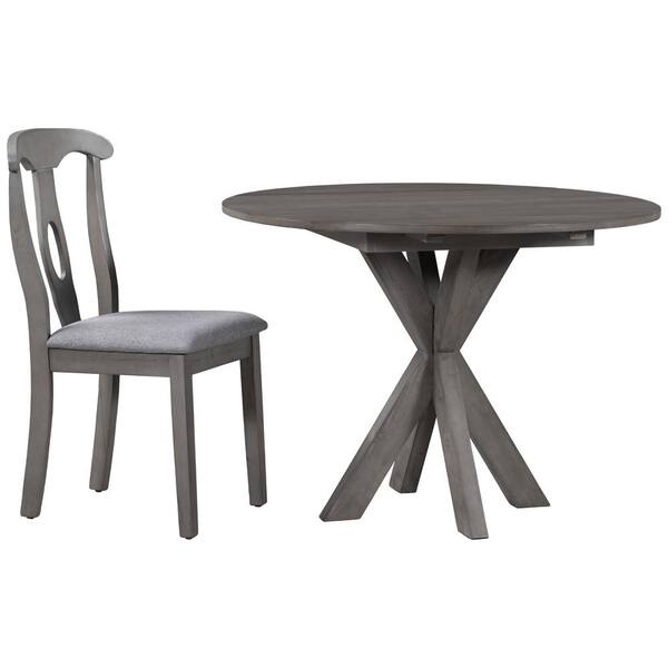 Rustic Farmhouse 5-Piece Gray Round Drop Leaf Wood Dining Table Set with 4-Padded Dining Chairs