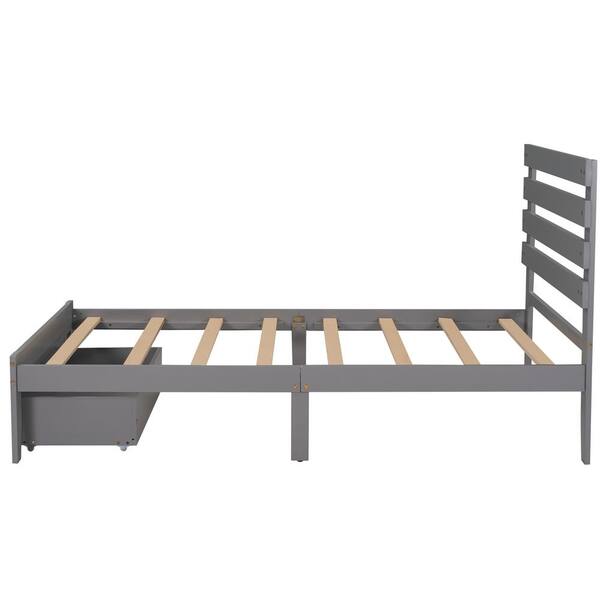 Simple Gray Wood Frame Twin Size Platform Bed with Drawer