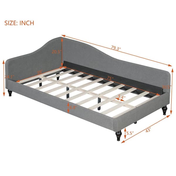 Sleek and Modern Gray Twin Size Linen Daybed with Solid Wood Legs