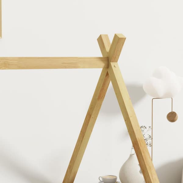 Tent Style Natural Wood Frame Twin Size Platform Bed, Teepee Bed with Fence Bedrails, Door, Slats