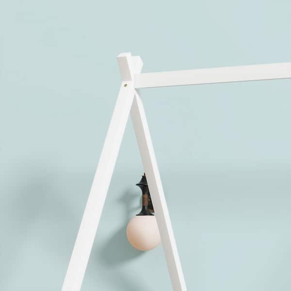Tent Style White Wood Frame Full Size Platform Bed, Teepee Bed with Fence Bedrails, Doors