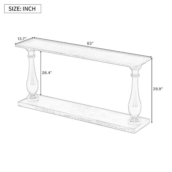 Vase-shaped Design 63 in. Black Rectangle Pine Wood Veneer and MDF Console Table with Bottom Shelf