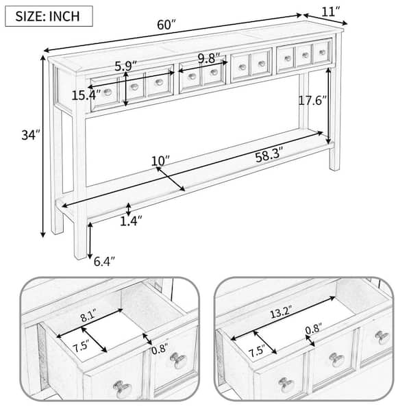 Vintage 60 in. Turquoise Green Rectangle Wood Console Table with Drawers and Open Shelf