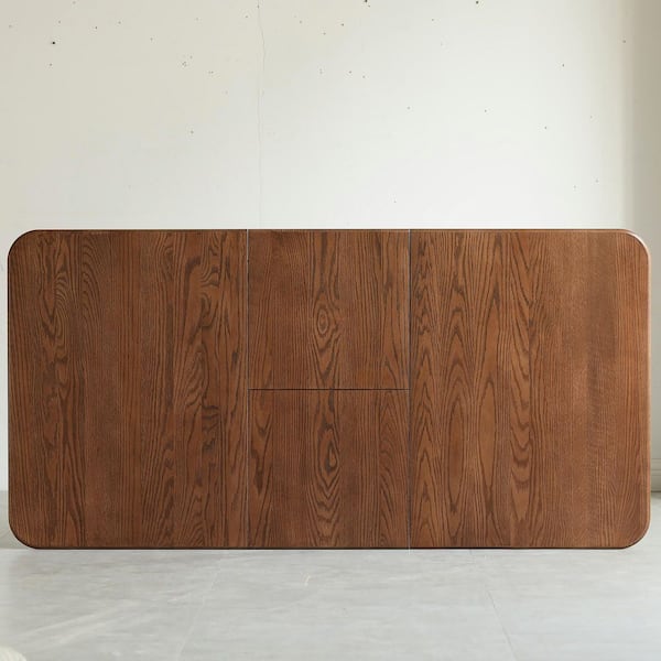 Walnut Brown Oak 100% Solid Wood 47.2 in. 63 in. 4 Legs Extendable Dining Table Seats 6-8 Self-Storage Butterfly Leaf
