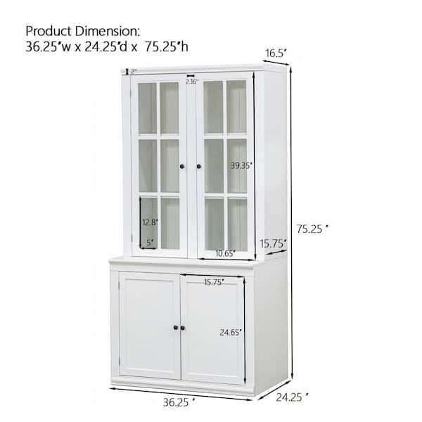 White 75.25 in. H Storage Cabinet with Tempered Glass Door, Adjustable Shelves, for Living Room, Kitchen, Office